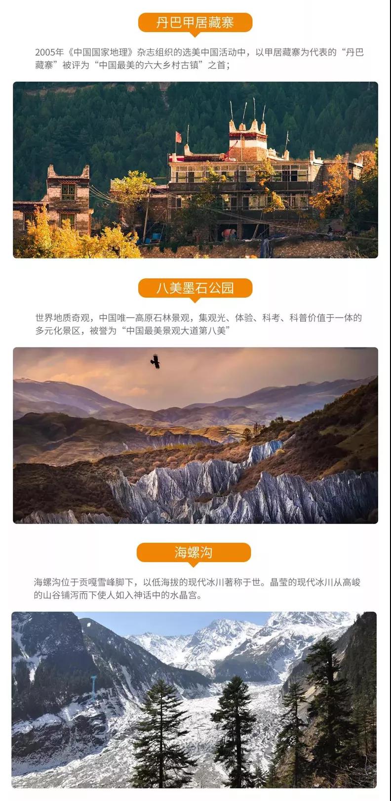 門(mén)票:丹巴甲居藏寨門(mén)票50元/人、四姑娘雙橋溝門(mén)票80元/人、墨石公園門(mén)票60元/人、亞丁景區(qū)門(mén)票150元/人、海螺溝門(mén)票+景區(qū)保險(xiǎn)(必須)95元/人(若由我方安排居住在香格里拉鎮(zhèn)產(chǎn)生60元的二次進(jìn)溝費(fèi)用,該費(fèi)用由我方贈(zèng)送承擔(dān));