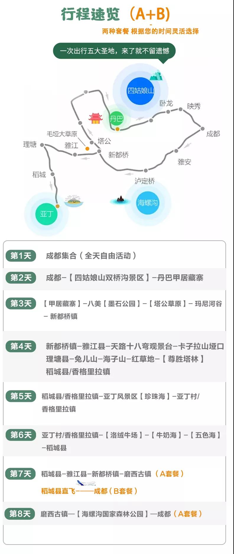 3. B套餐游客可于今日退酒店后,自行前往稻城亞丁機(jī)場(chǎng)直飛成都結(jié)束本次旅行。