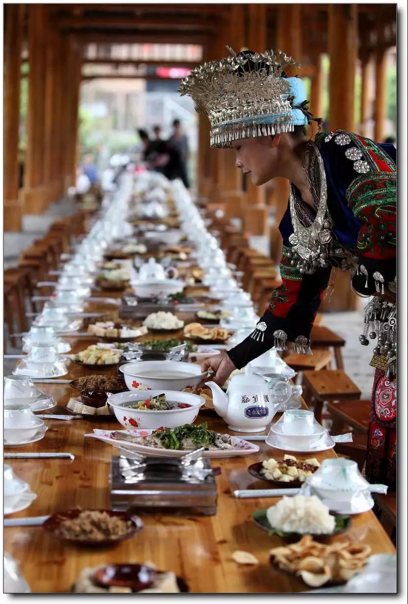 西江安排特色長桌宴酸湯魚火鍋品苗家米酒,體驗苗寨人家的“高山流水”,感受苗妹的熱情