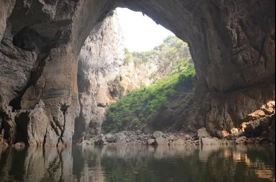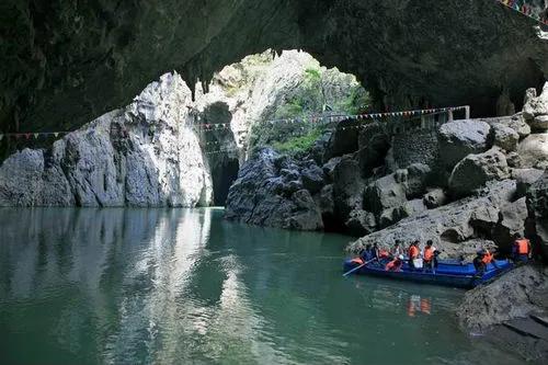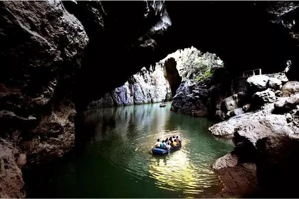 早餐后,乘車約2小時抵達【九洞天景區(qū)】(游覽時間約3-4小時)景區(qū)生態(tài)景觀秀美、溝壑縱橫、植 被發(fā)育、伏流明暗交替,洞洞相連,組合成集溶洞、伏流、天窗、天坑、峽谷、天生橋、懸崖、絕壁、峰叢幽谷等為一體的雄奇瑰麗的巖溶大觀。在這一段長約2公里的六沖河河道上,箱形切割頂板 多處塌陷,形成了多個形狀、大小各異的天窗、天坑,是已發(fā)現的天窗天坑最密集的溶洞群,是可供乘船游覽最高大的溶洞群。