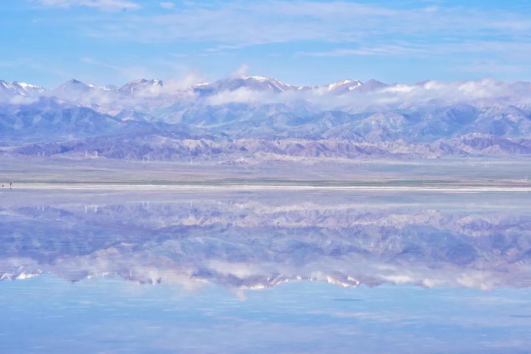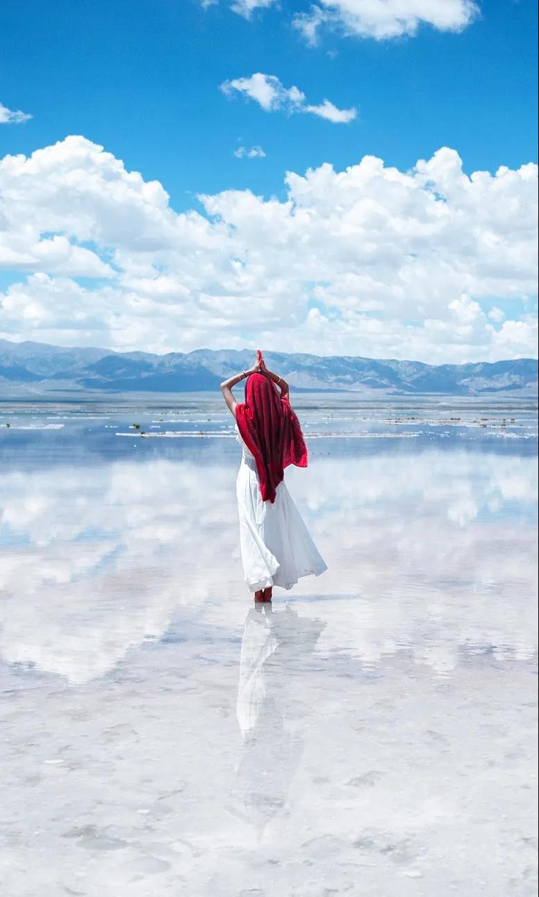 茶卡鹽湖被國(guó)家旅游地理雜志評(píng)為“人一生必去的55個(gè)地方”之一,這里的采鹽歷史非常悠久,湖水含鹽量很大,湖面上會(huì)自然結(jié)晶,一片純白。結(jié)晶之上是一層薄薄的露水,將天空、云朵和對(duì)岸的山都倒映在白色的湖里,非常漂亮,所以也被稱為“中國(guó)的天空之境”。大家可以乘坐景區(qū)內(nèi)的小火車前往景區(qū)深處游玩,如果不乘坐小火車,沿著鐵軌向湖深處散散步拍拍照片也是非常愜意的。