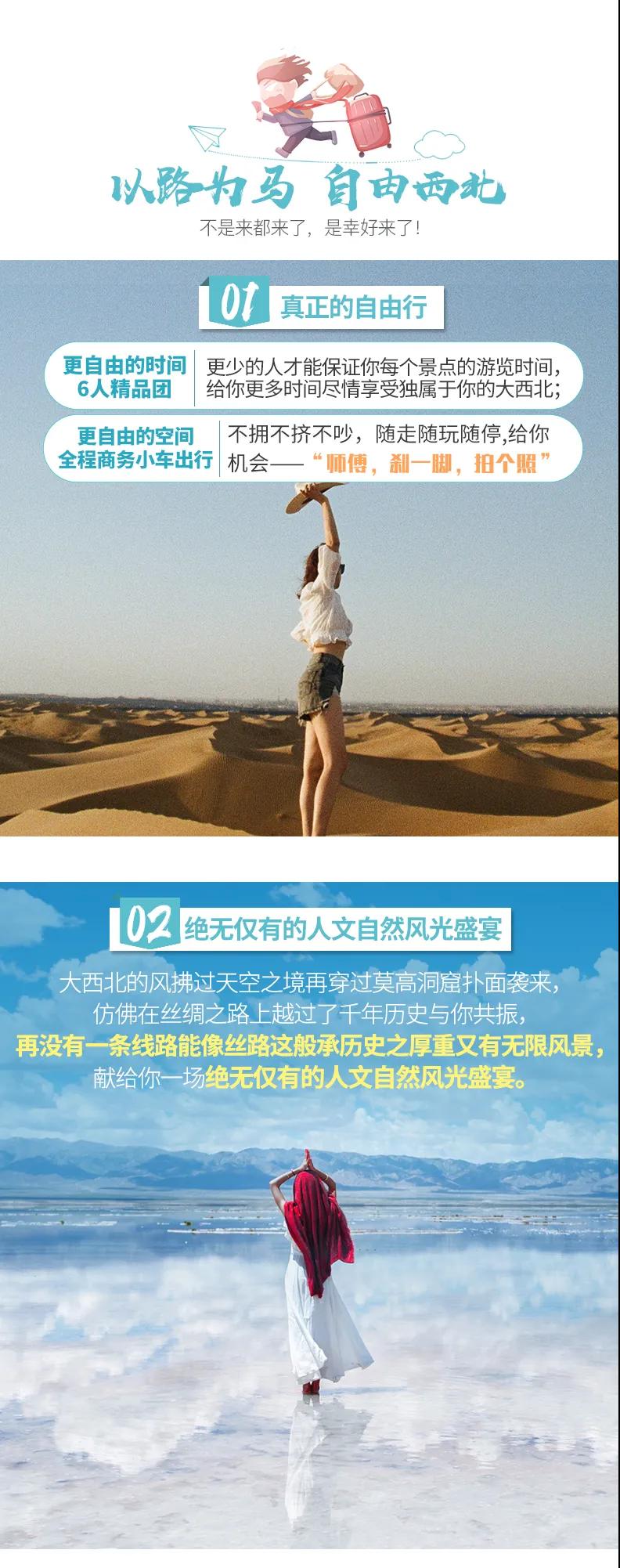 1、私人訂制:我們客戶范圍囊括了全國各大城市,川西、西北、東北,皖南,貴州,在路上永遠(yuǎn)有我們的身影。我們將為每一個有定制需求的你策劃出獨屬于自己的完美旅行。