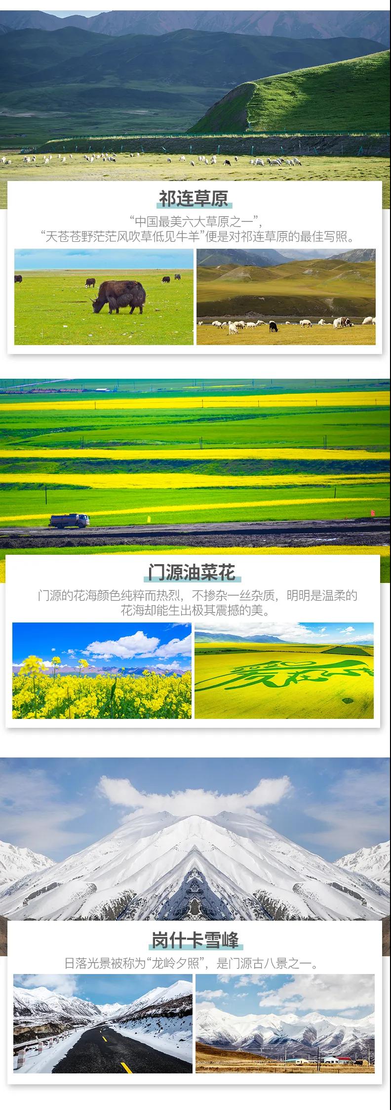 張掖 — 扁都口 — 祁連草原 — 門源(花季賞百里油菜花)— 崗什卡雪峰(遠(yuǎn)觀)— 西寧 — 聊城