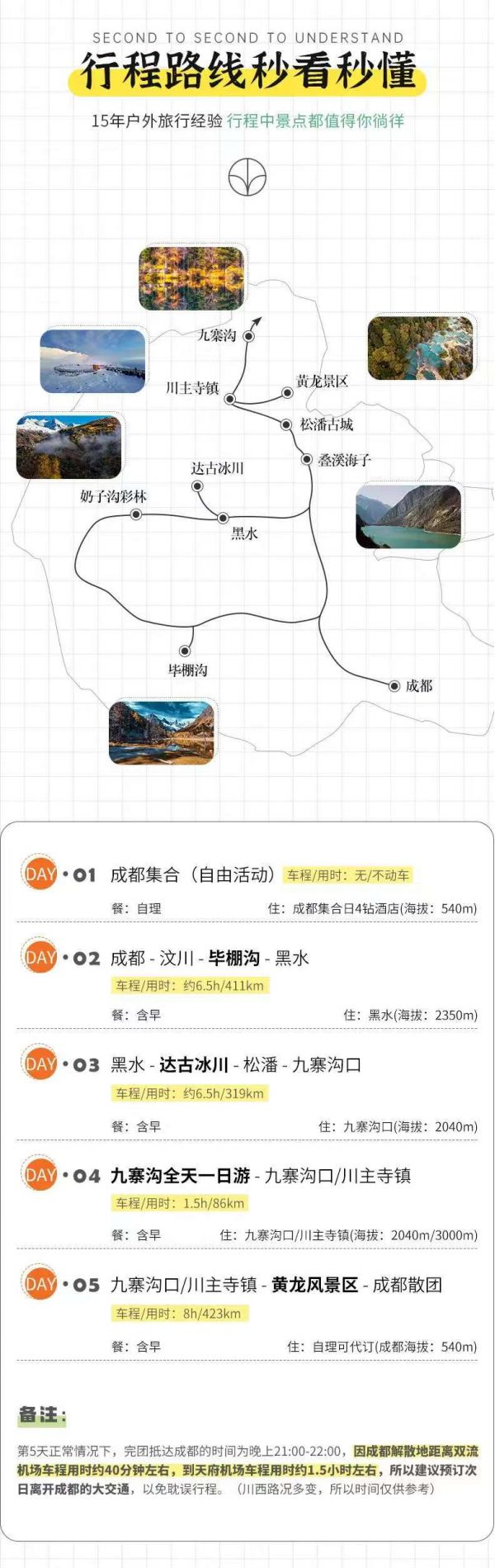 D5九寨溝口/川主寺鎮(zhèn) - 黃龍風(fēng)景區(qū) - 成都 - 聊城(海拔參考:2040m/3000m-3600m-540m)
