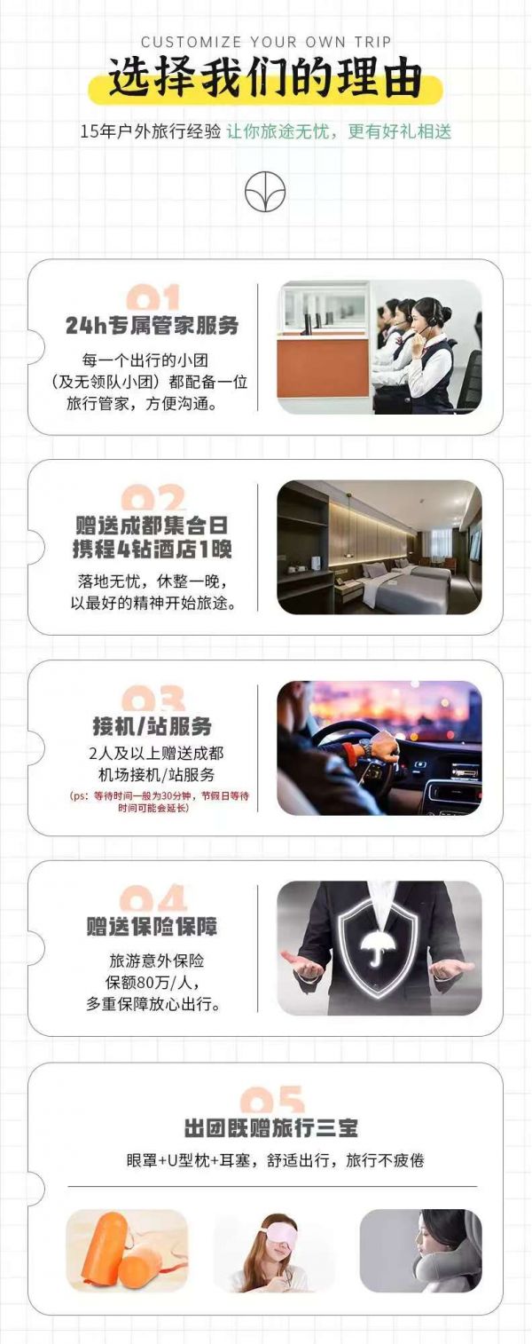 (1)受天氣、堵車等客觀因素影響,當(dāng)日回成都比較晚,請(qǐng)盡量不預(yù)訂當(dāng)天的返程機(jī)票或火車票,以免因?yàn)槎萝嚱o您帶來沒有必要的損失。