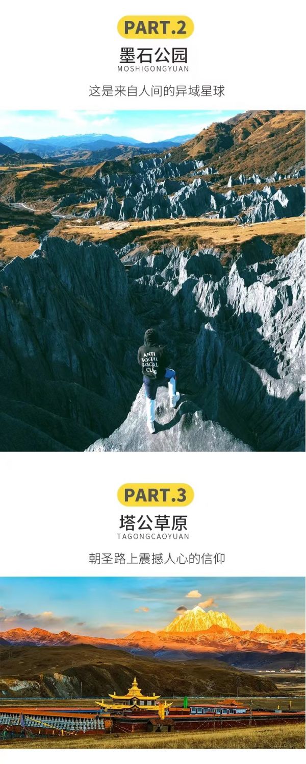 【格底拉姆天空之城】打卡拍照,約30分鐘;這里不僅有媲美魚子西的夕陽和星空,還能對望雅拉雪山和貢嘎雪山,有360度雪山觀景平臺,全方位拍照無死角,更有川西最網(wǎng)紅的白色秋千,讓你輕松拍出唯美大片,還有很多網(wǎng)紅打卡項目。