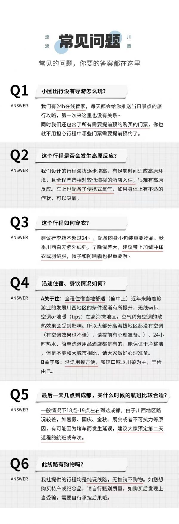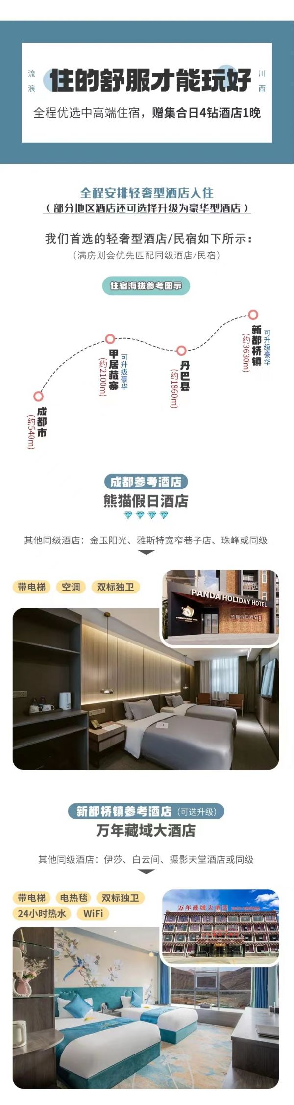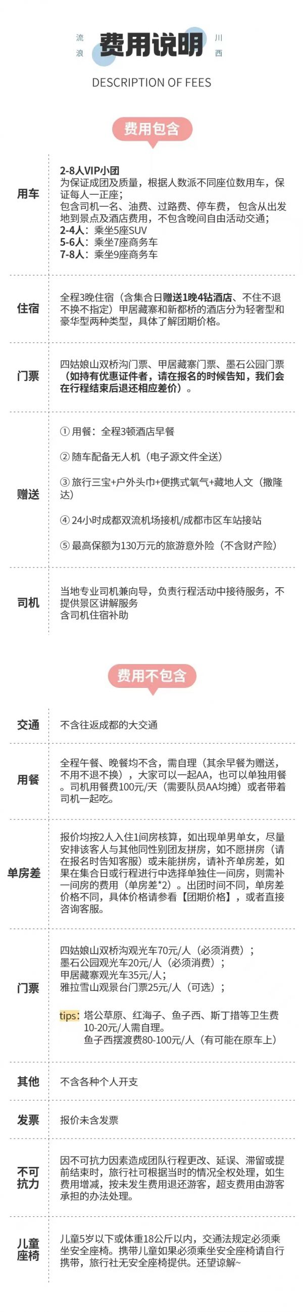 (3)因川西各景點(diǎn)間路途遙遠(yuǎn)孕婦、哺乳期兒童、70歲以上老人不宜報(bào)團(tuán)(65-70歲之間參團(tuán)需簽訂免責(zé)協(xié)議)