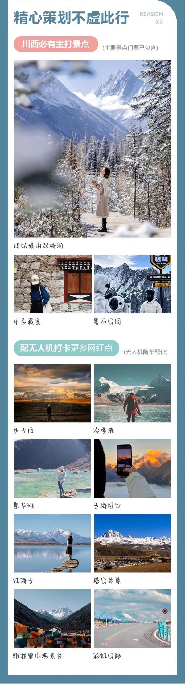 紅海子+魚(yú)子西+月亮湖+冷嘎措+墨石公園+雅拉雪山觀(guān)景臺(tái)+甲居藏寨+四姑娘山+雙橋溝?