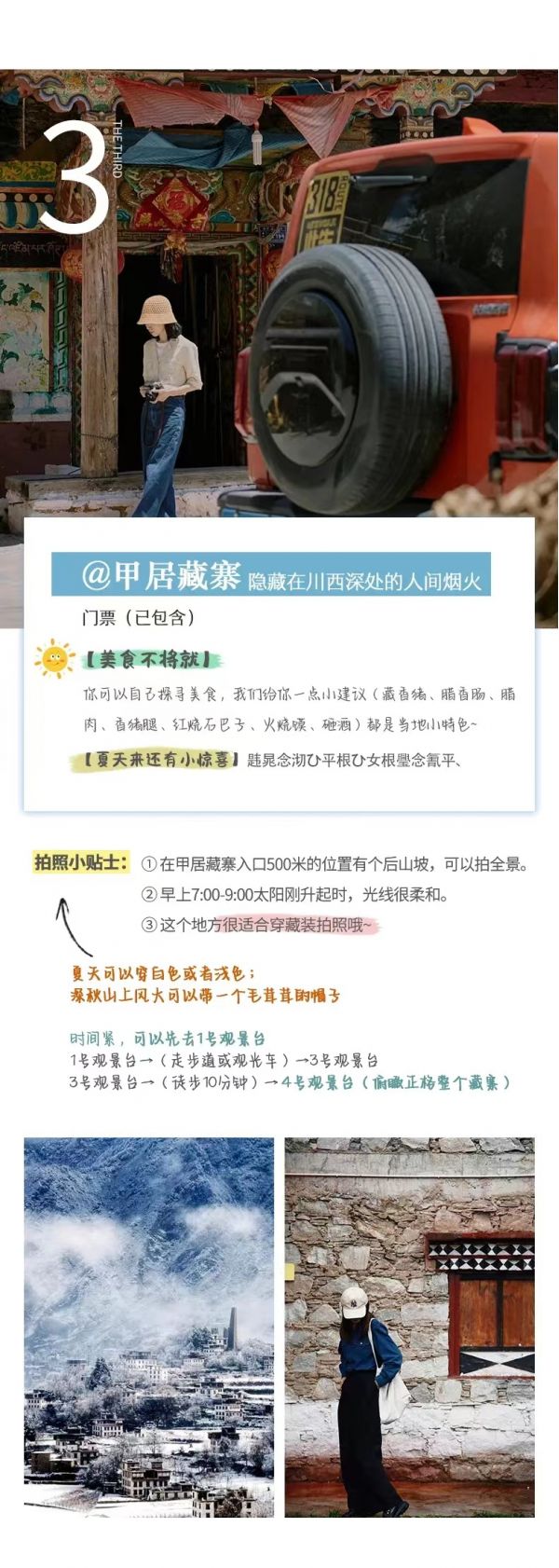 甲居藏寨 - 雅拉雪山觀(guān)景臺(tái) - 墨石公園 - 塔公草原 - 魚(yú)子西 - 新都橋鎮(zhèn)