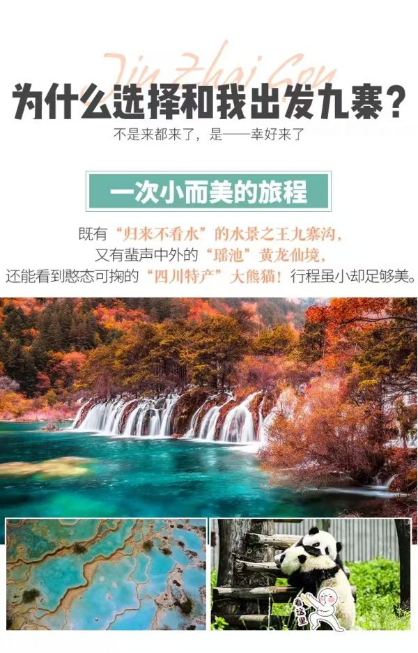 門票:含熊貓樂園門票、黃龍門票、九寨溝門票(優(yōu)惠及退票請現(xiàn)詢報名處。)