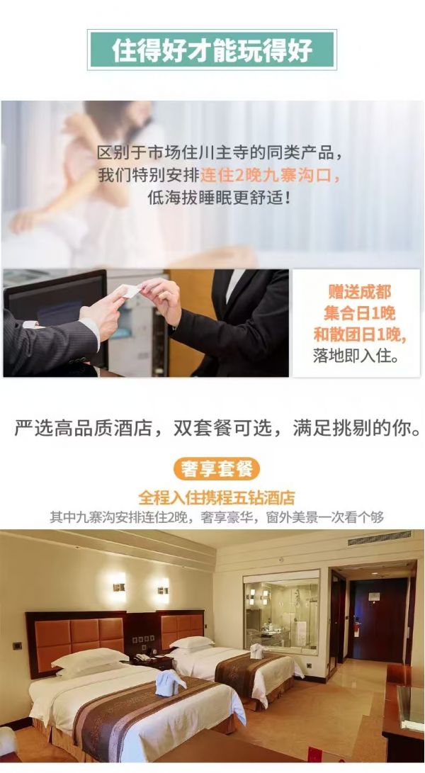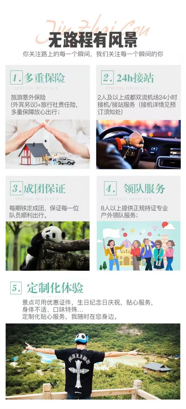 (5)走進藏家藏文化體驗由領隊/司機視實際情況靈活安排在D2或D3;如因九寨溝防疫政策規(guī)定,走進藏家暫停營業(yè),則晚餐調(diào)整為團餐,望您諒解。