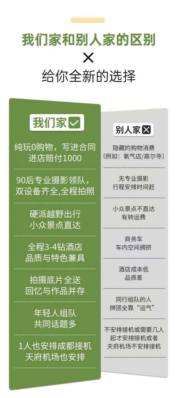 (3)本線路沒有“代購業(yè)務(wù)”,請(qǐng)不要在團(tuán)隊(duì)中或者完團(tuán)后,請(qǐng)求駕駛員代購任何產(chǎn)品,如有需要請(qǐng)自行篩選、購買。