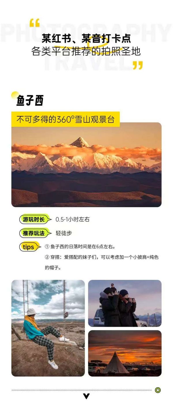 (3)在旅行過程當中,是否能出片,出什么樣的片子,是天氣,光線,季節(jié)等綜合因素決定的,團隊不可能因為某個景點未拍到滿意的片子而增加停留時間。