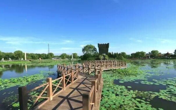 我們特別贈送游船項(xiàng)目。景區(qū)水域?qū)掗煟┖褪抢镁皡^(qū)的水資源建成的。霜雪湖濕地水道總長10公里,可與揚(yáng)州的瘦西湖相媲美,是景區(qū)的水上游園線路。沿水道我們可以欣賞鹽堿地特有的生態(tài)林、天然濕地風(fēng)光,形態(tài)各異的荷花和水生植物,與各種水鳥親密接觸!中心碼頭設(shè)有快艇、竹筏、腳踏船、手劃船等各種水上交通工具。您在此既可以體驗(yàn)乘風(fēng)破浪的快感,也可以享受碧波蕩舟漫步“瘦西湖”的愜意!(此處參觀約1小時(shí))
