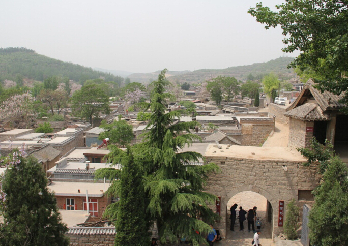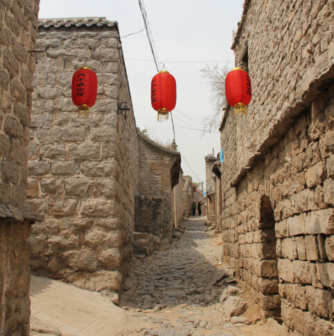 這里的房屋大多是四合院,還有古色古香的四合樓院,沿白色石階登上石樓,放眼四望,周?chē)且谎弁坏竭叺陌谆ɑǖ氖渴荩T(mén)與門(mén)相對(duì),戶(hù)與戶(hù)相連。據(jù)介紹,這里房屋建筑規(guī)范明確,東西為街,南北為巷,不通為胡同。全村共有六街七巷十八胡同,總長(zhǎng)3700多米,街巷全是青石鋪就,街巷串連的石頭房屋4000多間。