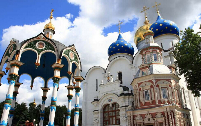 今天部分拍攝點(diǎn)包括謝鎮(zhèn)民風(fēng)特色,修道院建筑精華及藝術(shù)杰作。【圣三一修道院】*(內(nèi)觀,約1.5小時(shí))是東正教最古老的教堂建筑群之一,里面有許多著名的俄羅斯建筑古跡。其中最古老的是三位一體教堂,里面安放著謝爾蓋院長(zhǎng)的棺木。周圍坐落著圣靈降臨教堂、圣母升天教堂、圣謝爾蓋教堂、左希姆和薩瓦提等教堂。它的建筑精華包括:用白色半寶石砌成的圓頂、黃金雕成的壁上橫木、由魯伯里歐夫所繪圣像裝飾而成的圣像門等,都是令人贊嘆的藝術(shù)杰作。以畫《三位一體》而出名的俄羅斯畫家安德烈·魯布廖夫的壁畫作品一度收藏在教堂中,現(xiàn)在則收藏于莫斯科的特列基亞科夫畫廊。午餐特別安排品嘗特色俄餐,稍后入住賓館。下午客人可以自由活動(dòng),體驗(yàn)小鎮(zhèn)的民風(fēng)特色,感受無(wú)邊的美景。