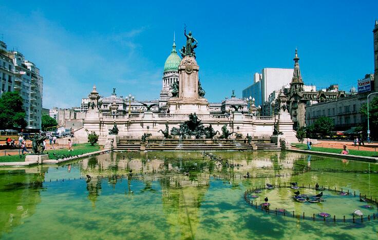 早餐后,游覽布宜諾斯艾利斯北區(qū),驅(qū)車經(jīng)過Lopez、 Olivos和總統(tǒng)官邸,沿岸欣賞高級(jí)住宅區(qū)秀麗景觀。隨后至老虎洲,搭乘游艇暢游巴拉那河,感受優(yōu)美的自然景觀,觀賞兩岸旖旎風(fēng)光。它是由巴拉那河和烏拉圭河流入阿根廷境內(nèi)的銀河而形成的三角洲區(qū)域,生態(tài)保護(hù)嚴(yán)格,生態(tài)環(huán)境良好,被譽(yù)為“南美威尼斯”。隨后參觀五月廣場(chǎng)、有粉紅宮之稱的總統(tǒng)府、都會(huì)主教堂、國(guó)會(huì)大廈、路經(jīng)世界最寬的七九大道和獨(dú)立紀(jì)念碑。
