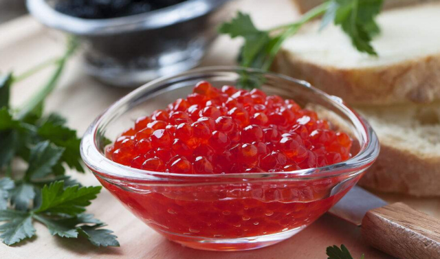 原料取自里海的鯨魚,嚴(yán)格說(shuō),只有用鯨魚卵制成的醬才能叫魚子醬。魚子醬是俄羅斯的頂級(jí)美食,其尊貴程度甚至要超越中餐里的鮑魚。魚子醬分為紅魚子醬和黑魚子醬兩種,黑色的產(chǎn)于鱘魚,紅色的產(chǎn)于鮭魚。