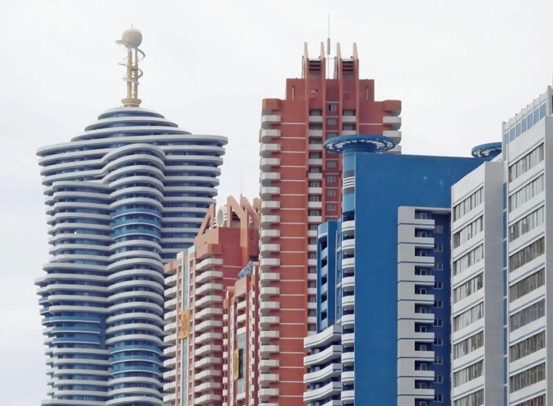 除了XXXL號(hào)的建筑外形,在配色上,金正恩也偏愛柔和清新的“馬卡龍色調(diào)”。無論是巨型公共建筑還是普通居民樓,無論是室內(nèi)還是室外,都被粉刷上了藍(lán)、橘、粉、綠的涂料。