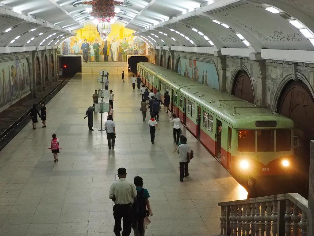 仿照莫斯科風(fēng)格建成的平壤地鐵站,宣傳畫也是必不可少的裝飾