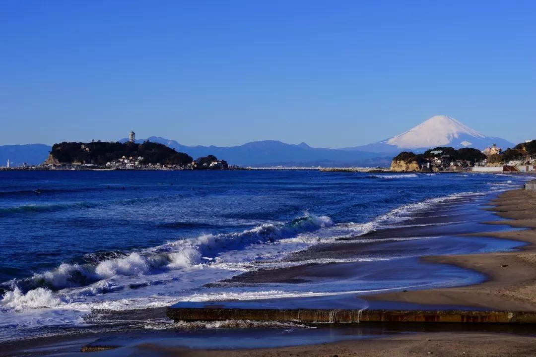 從稻村崎眺望到的富士山