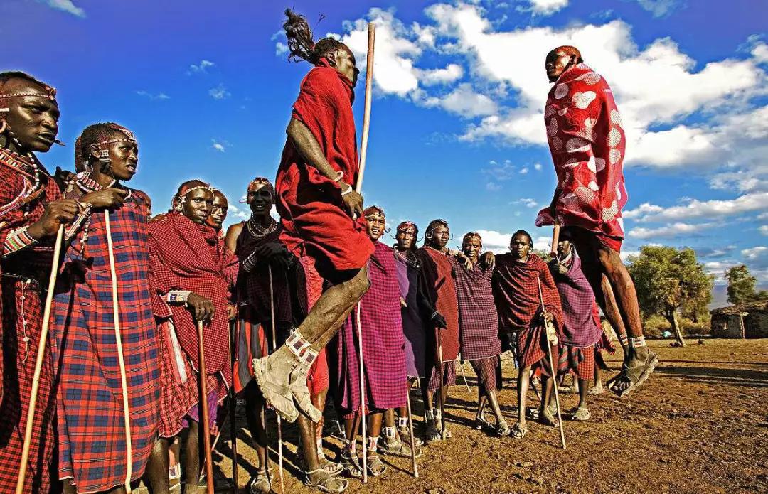 馬賽人是東非草原上原始遺留部落的象征,這個民族以牧牛羊為生,他們不論男女以穿著鮮艷紅色格子的披布為標志,帶耳環(huán)、項鏈,手里永遠握著很有“黑非洲”特色的木棍。他們和野生動物一樣風餐露宿,過著隨遇而安的生活。