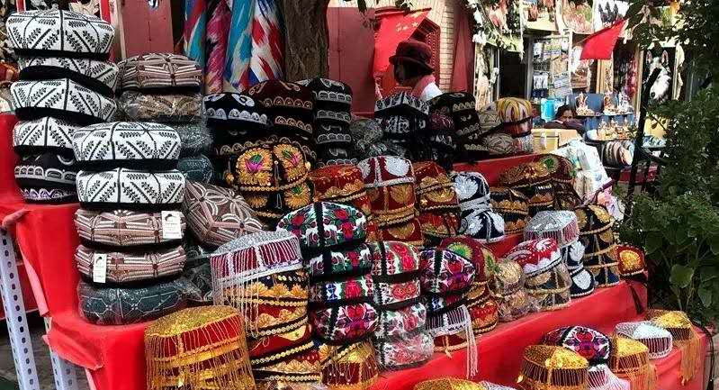 小貼士:來旅游的朋友可以讓花帽店的老板為你挑選一頂花帽,戴著花帽游著古城,當(dāng)一次“兒子娃娃”和“新疆古麗”。