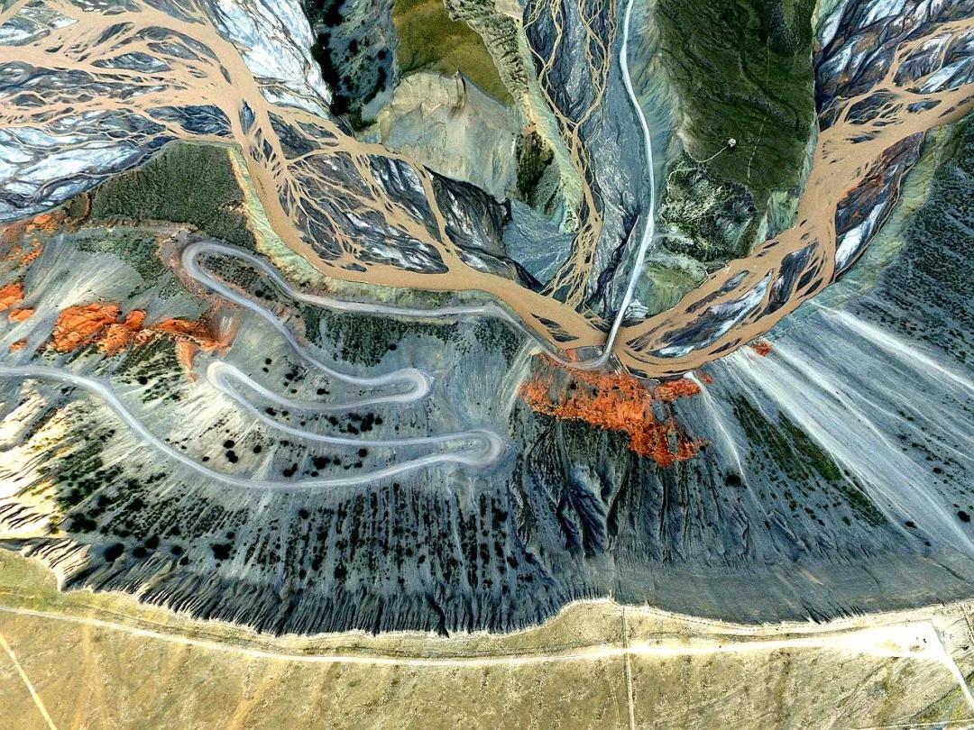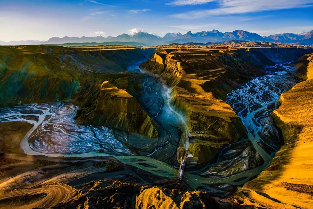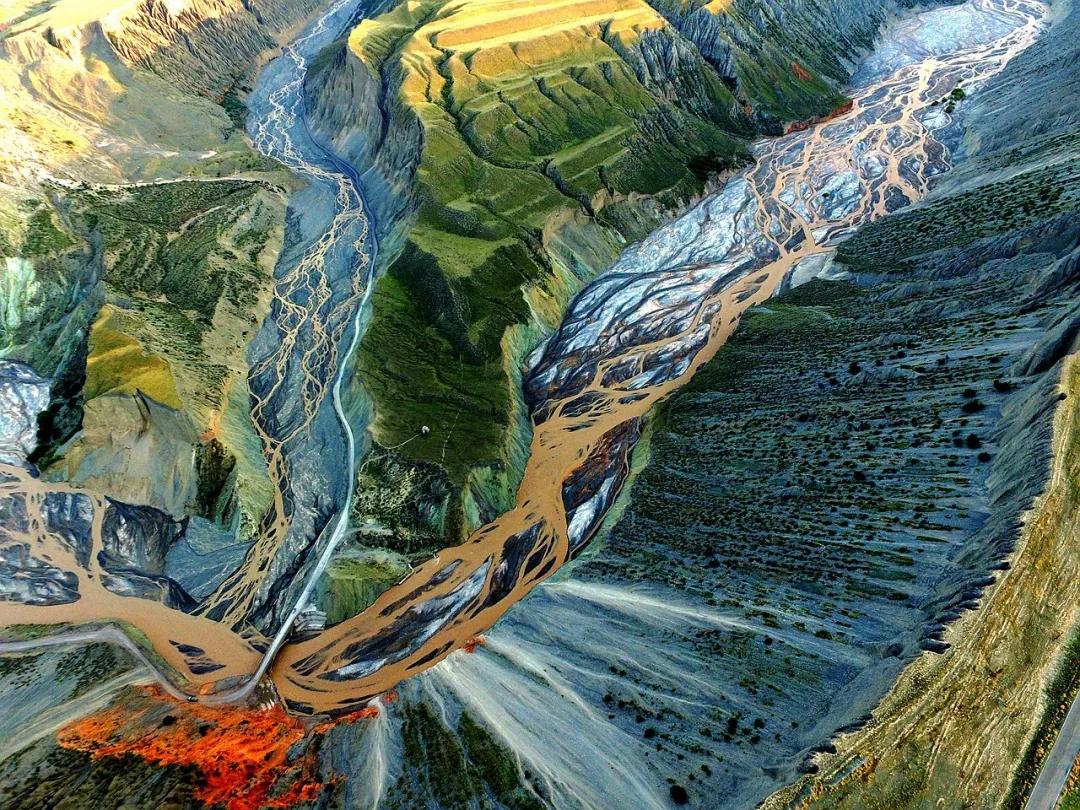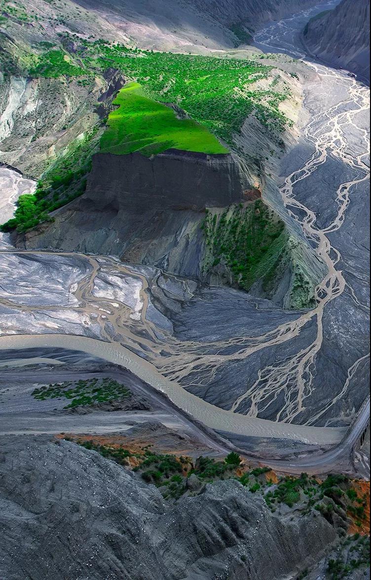 鮮為人知的安集海峽谷,其實(shí)有著令人目眩、剛?cè)岵?jì)的壯美景觀:峽谷兩側(cè)是從上到下依次排開的河流階地,宛如波濤洶涌的海浪一樣撲面而來(lái),充分顯示了峽谷陽(yáng)剛的一面。而河谷里蜿蜒流淌的辮狀河流,千轉(zhuǎn)百回,在纏綿低語(yǔ)中將峽谷柔情的一面展露無(wú)遺。這條峽谷還以豐富的色彩而令人感到嘆為觀止。