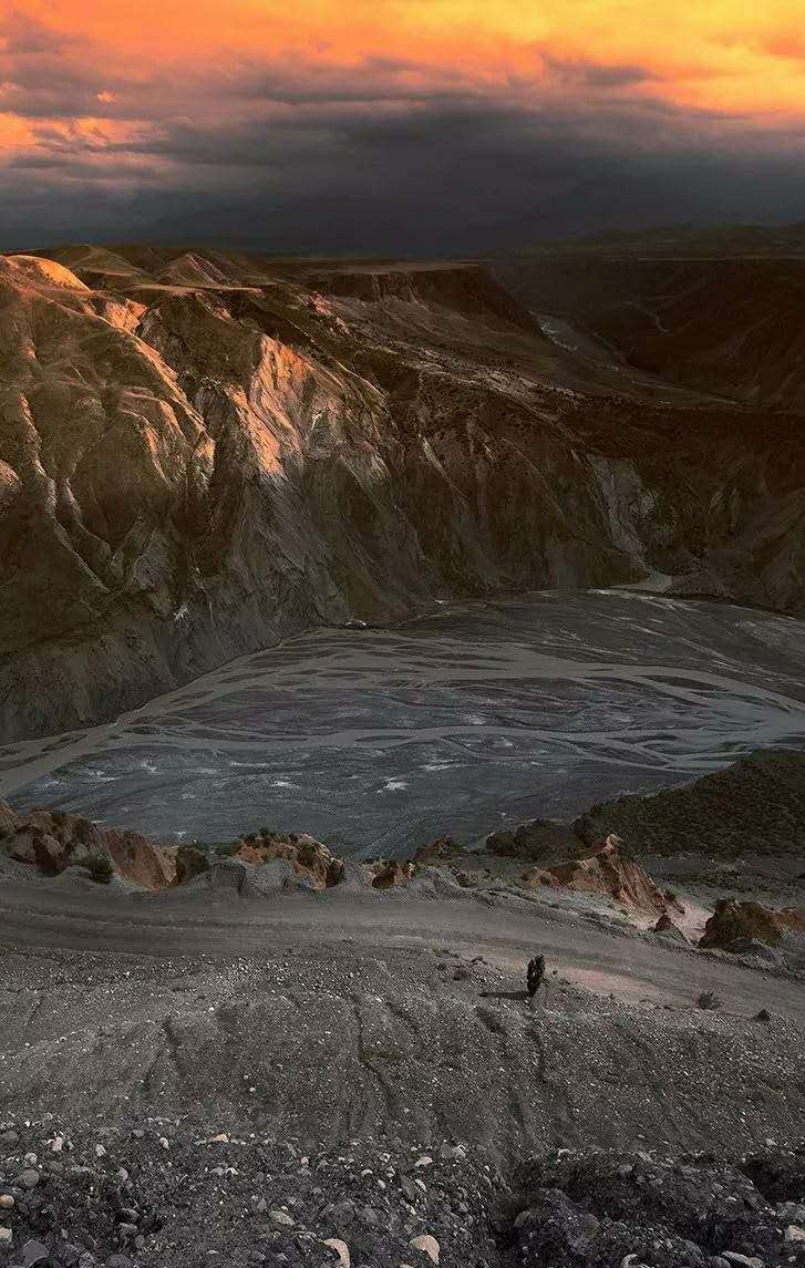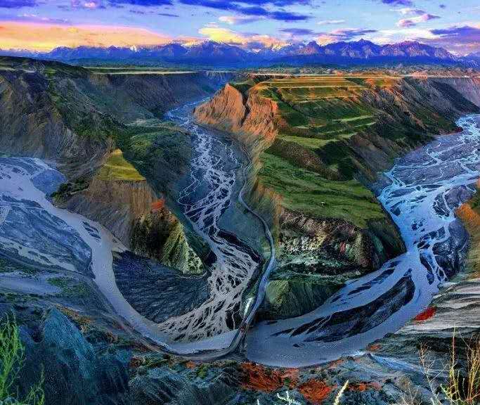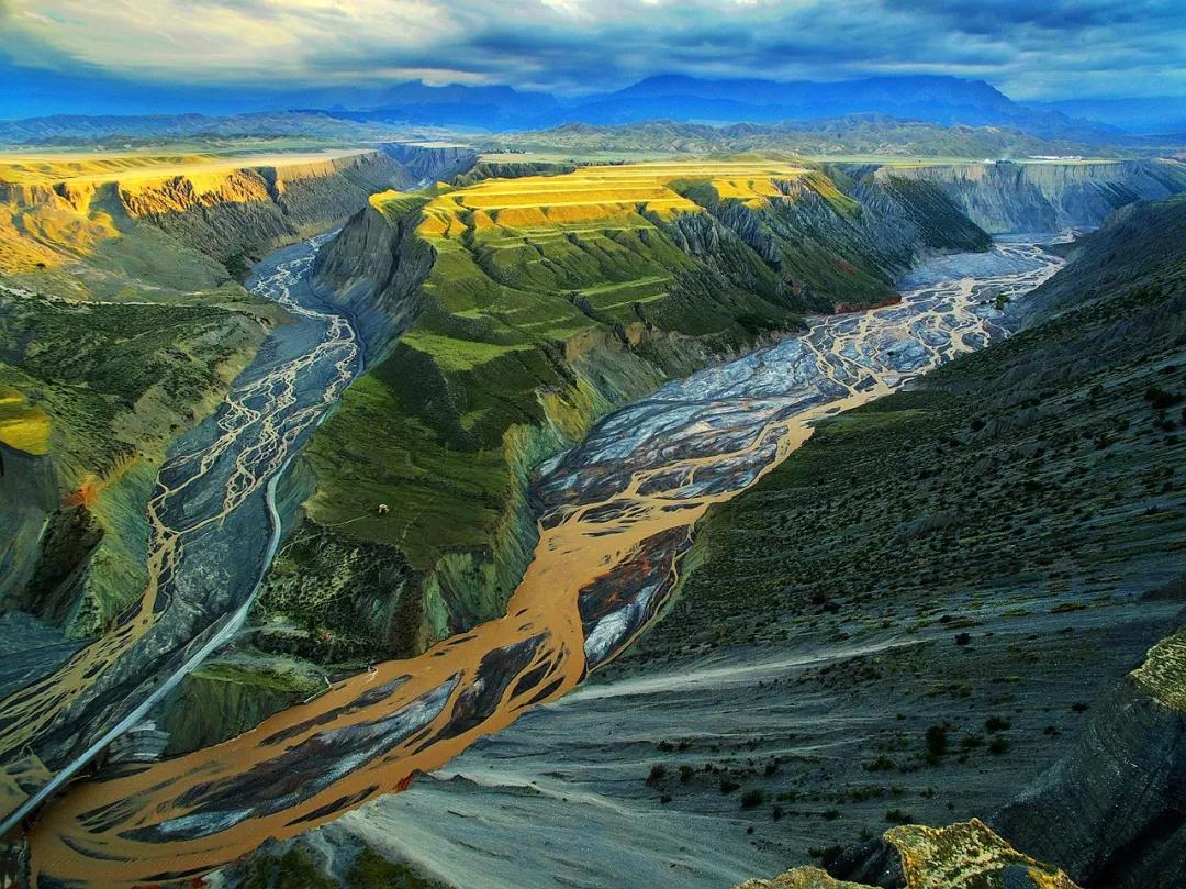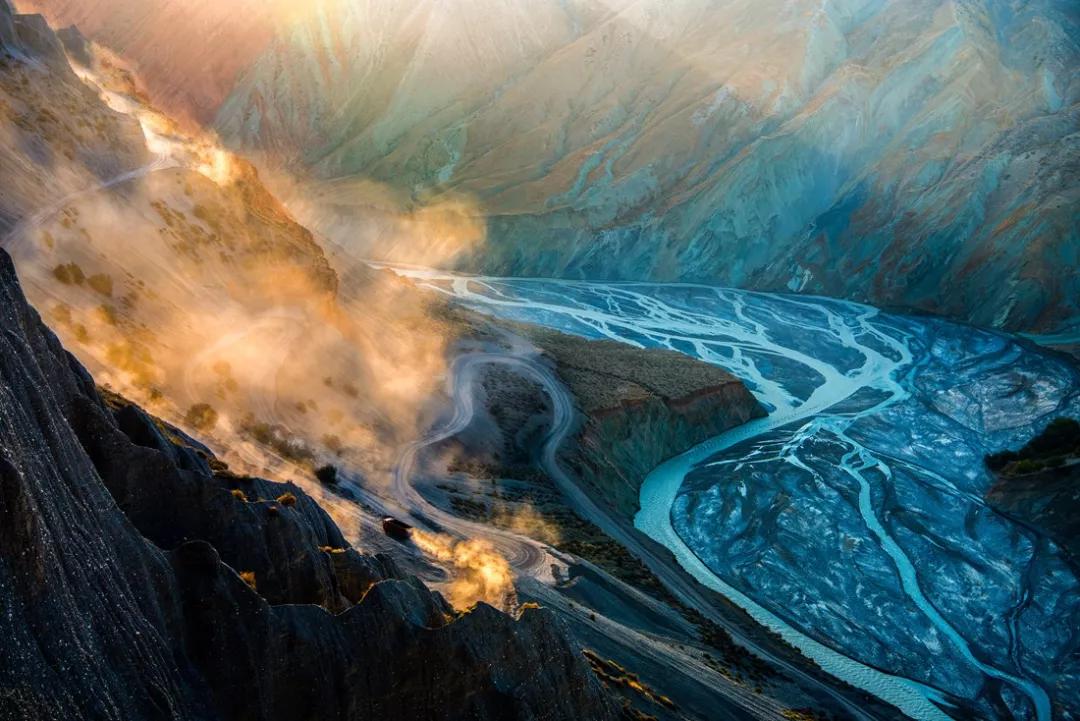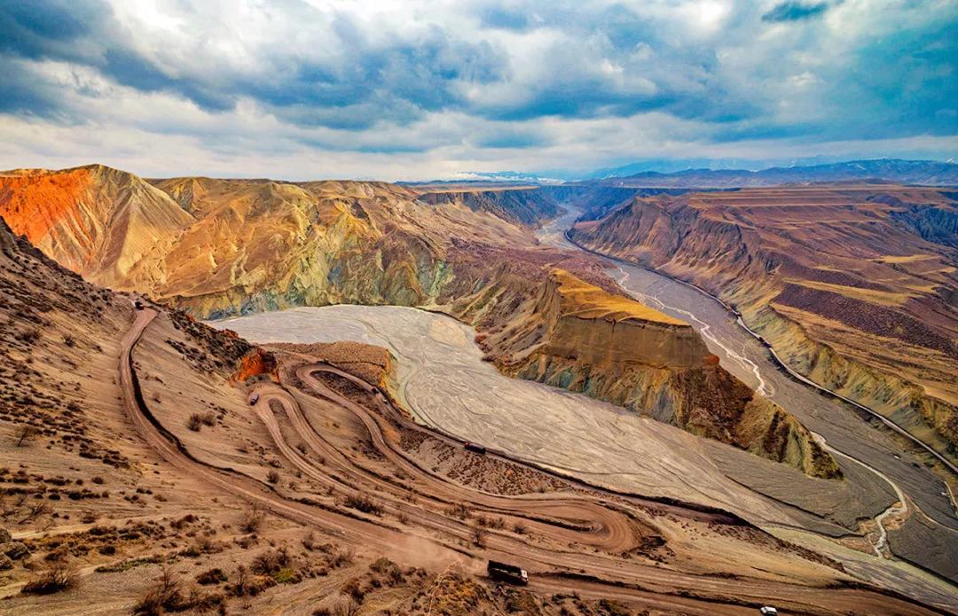鮮為人知的安集海峽谷,其實(shí)有著令人目眩、剛?cè)岵?jì)的壯美景觀:峽谷兩側(cè)是從上到下依次排開的河流階地,宛如波濤洶涌的海浪一樣撲面而來(lái),充分顯示了峽谷陽(yáng)剛的一面。而河谷里蜿蜒流淌的辮狀河流,千轉(zhuǎn)百回,在纏綿低語(yǔ)中將峽谷柔情的一面展露無(wú)遺。這條峽谷還以豐富的色彩而令人感到嘆為觀止。