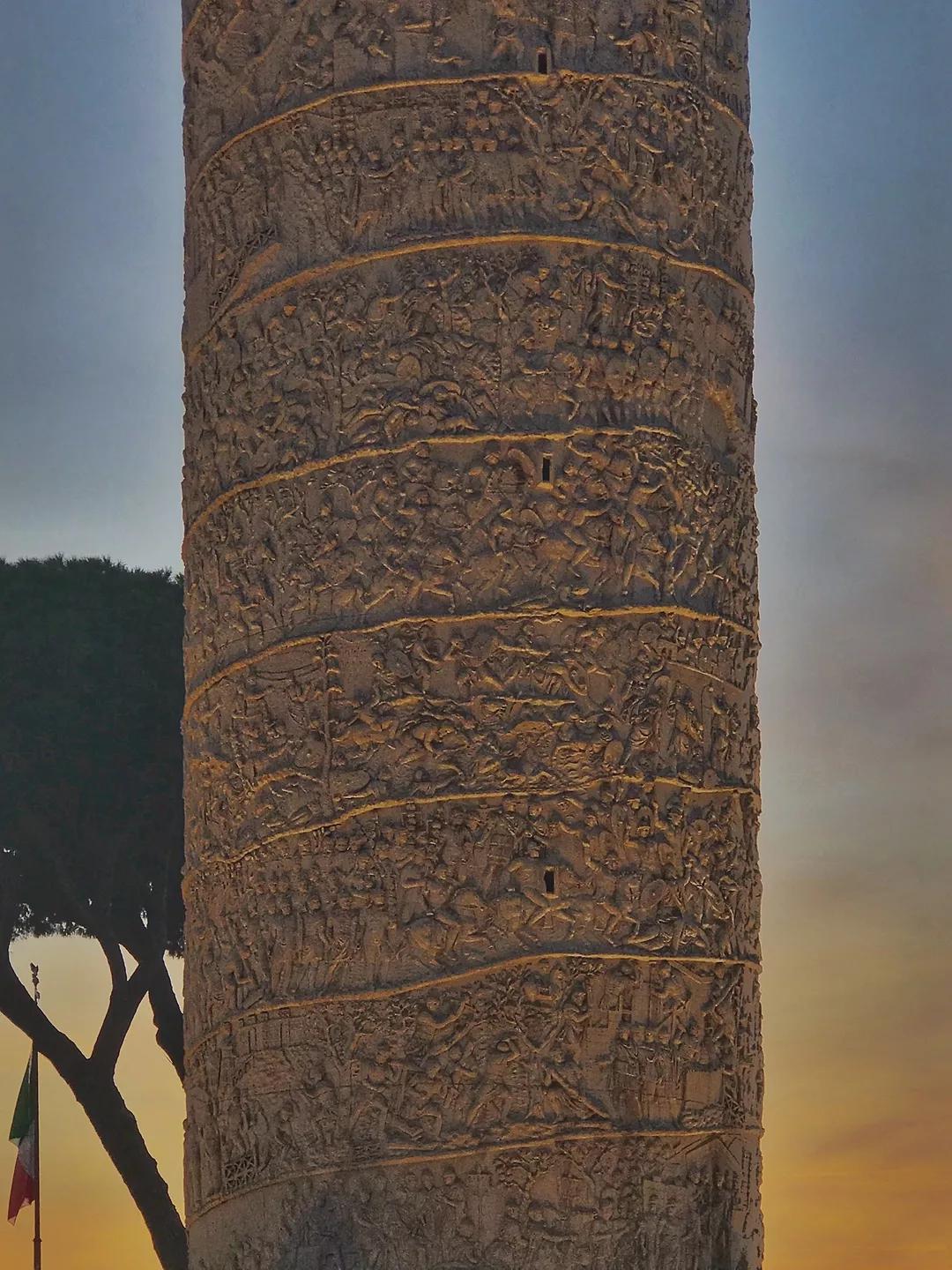 這是一條盤旋上升的石柱,石柱外立面用大理石雕刻著圖拉真的豐功偉績,雕工的精細和奇特的設(shè)計令人贊嘆,你也許要拿著望遠鏡繞著柱子轉(zhuǎn)上無數(shù)圈,才能讀完這位偉大帝王的一生。