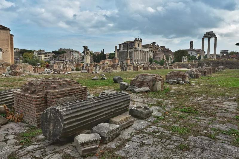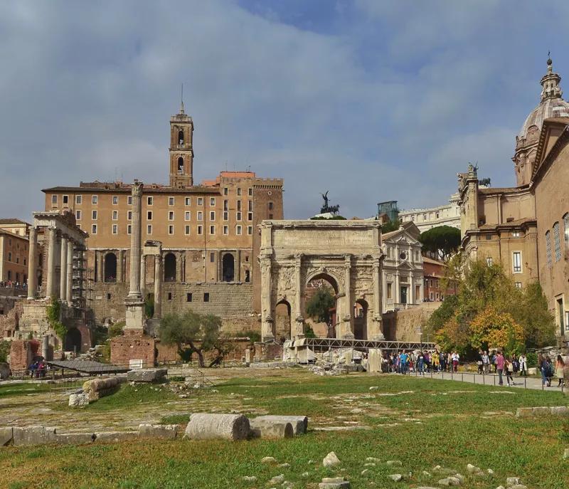 圍繞著這座廣場,遍布著神殿、元老院、會議堂、凱旋門,以及重要歷史人物曾經(jīng)生活和死去的遺跡。