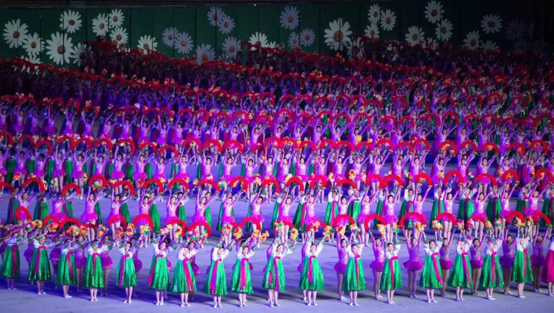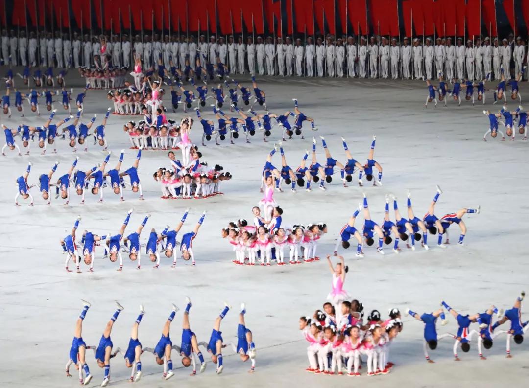 平壤大同江畔,綾羅島“五一”體育場是團(tuán)體操的主要舞臺。演出以朝鮮民族獨特的“歌舞之美”、富有活力的團(tuán)體操、嘆為觀止的雜技表演,展現(xiàn)出朝鮮革命與戰(zhàn)爭、政治和軍隊建設(shè)、民生與經(jīng)濟(jì)發(fā)展以及對外交往的宏偉畫卷。