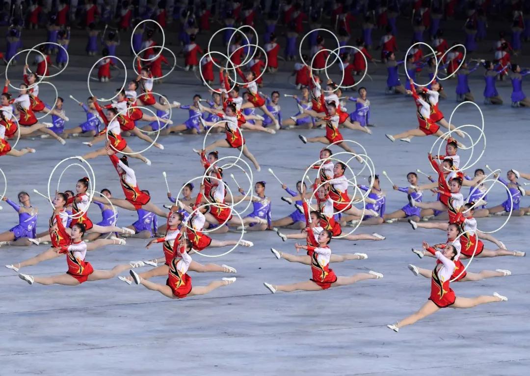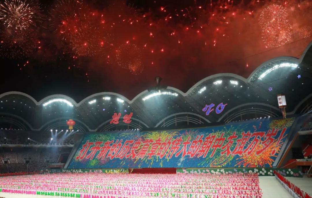 2018年9月,朝鮮為慶祝建國70周年打造了名為《輝煌的祖國》的大型團(tuán)體操和藝術(shù)演出,反映朝鮮建國以來在各領(lǐng)域取得的成就。