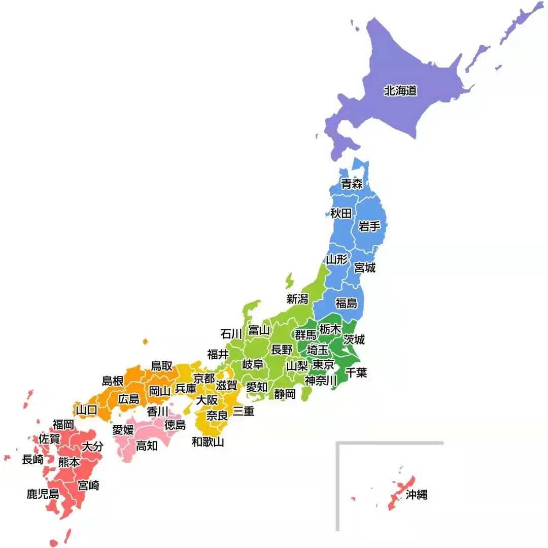 與中國的行政區(qū)劃——省市自治區(qū)類似,日本的行政區(qū)劃是都道府縣(とどうふけん)。共有1都、1道、2府、43縣。1都是東京都,1道是北海道,2府是京都府和大阪府。日本的縣相當(dāng)于中國的省,共有43 縣。因此日本的行政區(qū)劃一共有 47 個。