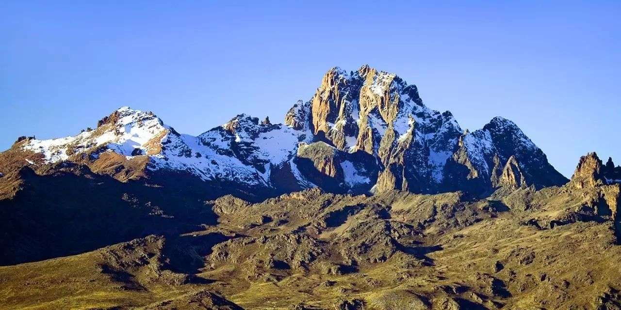 肯尼亞山是東非大裂谷最大的死火山,位于肯中部赤道線上,北距內(nèi)羅畢約230公里。