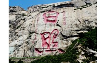 河山位于日照市區(qū)北十公里處,以“眾河之源”得名,海拔628米,高度為日照東部群峰之首,大有拔地凌霄之勢,巍巍聳立,誠謂“峭壁端嚴(yán),屹然一邑屏障”。河山山勢崢嶸,氣勢雄偉,遍布古跡,處處勝景,使游人大有登泰山之感。代表日照現(xiàn)代形象的巨書“日照”兩字刻于河山懸壁之上。“日”字長20米,寬17.5米:“照”字長25米,寬 25.5米。它是漢字摩崖石刻的世界之最,載入世界吉尼斯大全,給河山增添了一大景觀。