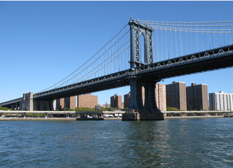紐約的布魯克林大橋橫跨紐約東河,連接著布魯克林區(qū)和曼哈頓島,1883年5月24日正式交付使用。大橋全長1834米,橋身由上萬根鋼索吊離水面41米,是當(dāng)年世界上最長的懸索橋,也是世界上首次以鋼材建造的大橋,落成時(shí)被認(rèn)為是繼世界古代七大奇跡之后的第八大奇跡,被譽(yù)為工業(yè)革命時(shí)代全世界七個(gè)劃時(shí)代的建筑工程奇跡之一。