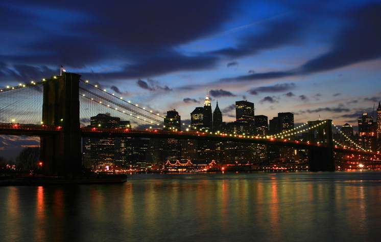 布魯克林大橋是1883年5月24日下午二時(shí)啟用通行的(維多利亞女皇誕辰日),開幕時(shí),每輛汽車收費(fèi)美金五元。如今,每天從橋上經(jīng)過的車輛約十四萬輛,單車千多架,行人兩千名。日落的時(shí)候,從布魯克林沿著木道步行,可以觀賞曼哈頓的高層建筑及美麗的街景,可說是紐約旅游的最亮點(diǎn)。每年7月4號(hào)美國獨(dú)立紀(jì)念日在此放煙火。