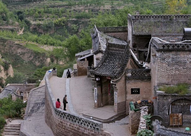 東財(cái)主家在鳳身上修建,西財(cái)主家在鳳的右翼上修建,鳳的左翼依然是舊村。東西財(cái)主好象在暗暗較量,在幾百米約 40度的高山坡上,精心設(shè)計(jì),精心施工,依山就勢(shì),高下疊置,從溝到頂,多達(dá)九層,其造型不同,風(fēng)格殊異。