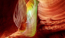 關(guān)于波浪谷,最具有代表性的是在美國的亞利桑那州北部與猶他州交界處的,朱紅懸崖帕利亞峽谷(Paria)的一些巖石,上面有著像波浪一樣的紋路,被稱作"The wave",古老的沙丘隨著科羅拉多平原的上升,加上漫長的風(fēng)蝕、水蝕,砂巖的層次逐漸清晰呈現(xiàn),平滑的、雕塑感的砂巖上流暢的紋路創(chuàng)造了一種令人目眩的三維立體效果,因其神奇的外觀和極高的科研價(jià)值使之成為世界八大巖石奇觀之一,靖邊“波浪谷”與亞利桑那州的波浪谷是有一定區(qū)別的,亞利桑那州的波浪谷在紅色之間夾有白色線條,紅白相間,而靖邊的波浪谷則以紅色為主,不過地質(zhì)構(gòu)造上二者都是同樣的紅砂巖地貌,靖邊波浪谷地質(zhì)構(gòu)造更加年輕,只有6000多萬年歷史,很多砂土還沒來得及凝固為巖石。