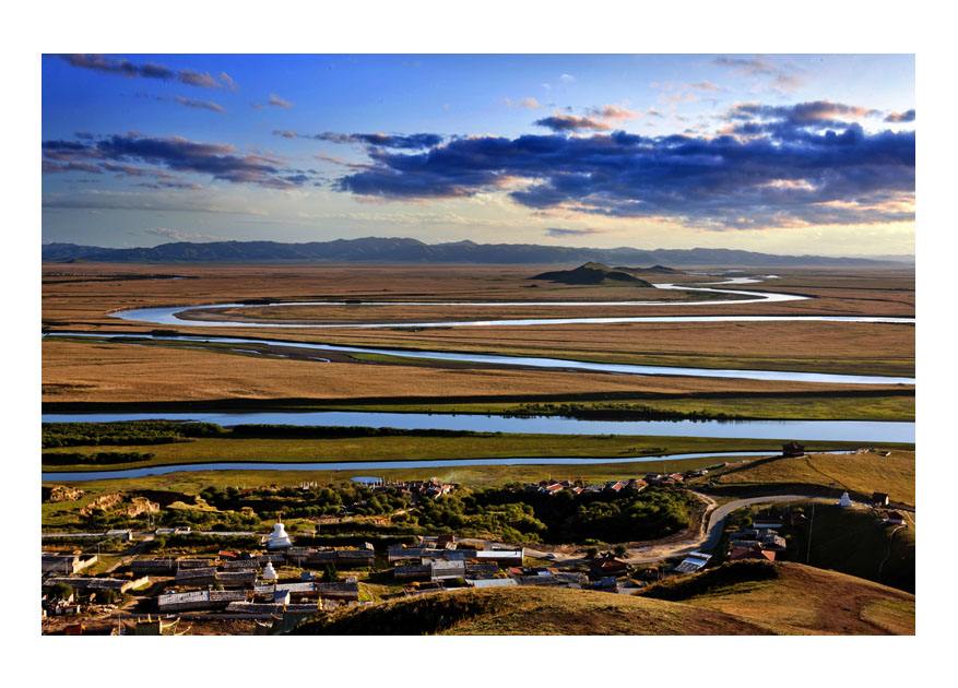 九曲黃河第一灣位于若爾蓋縣唐克鄉(xiāng),距縣城61公里。地處草原腹心地帶,白河于此匯入黃河,形成浩大氣勢。河面寬而蜿蜒,曲折河水分割出無數河洲、小島,水島翔集、漁舟橫渡,被中外科學家譽為“宇宙中莊嚴幻影”。黃河第一彎地勢平坦,水流舒緩,小島、岸邊紅柳成林。索克藏寺院修筑于黃河第一彎山凹臨河處,版權所有山東聊城聊之旅國際旅行社有限公司,轉載必究!白塔古寺,帳篷炊煙相伴黃河,更顯自然悠遠博大。