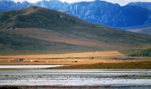 黃河第一彎地勢平坦,水流舒緩,小島、岸邊紅柳成林。索克藏寺院修筑于黃河第一彎山凹臨河處,白塔古寺,帳篷炊煙相伴黃河,更顯自然悠遠博大,這里有四川省最大的草原,面積近3萬平方公里,由草甸草原和沼澤組成。,第一灣位于若爾蓋縣唐克鄉(xiāng),距縣城61公里。地處草原腹心地帶,白河于此匯入黃河,形成浩大氣勢,草原地勢平坦,一望無際,人煙稀少。紅軍二萬五千里長征曾多次通過這里