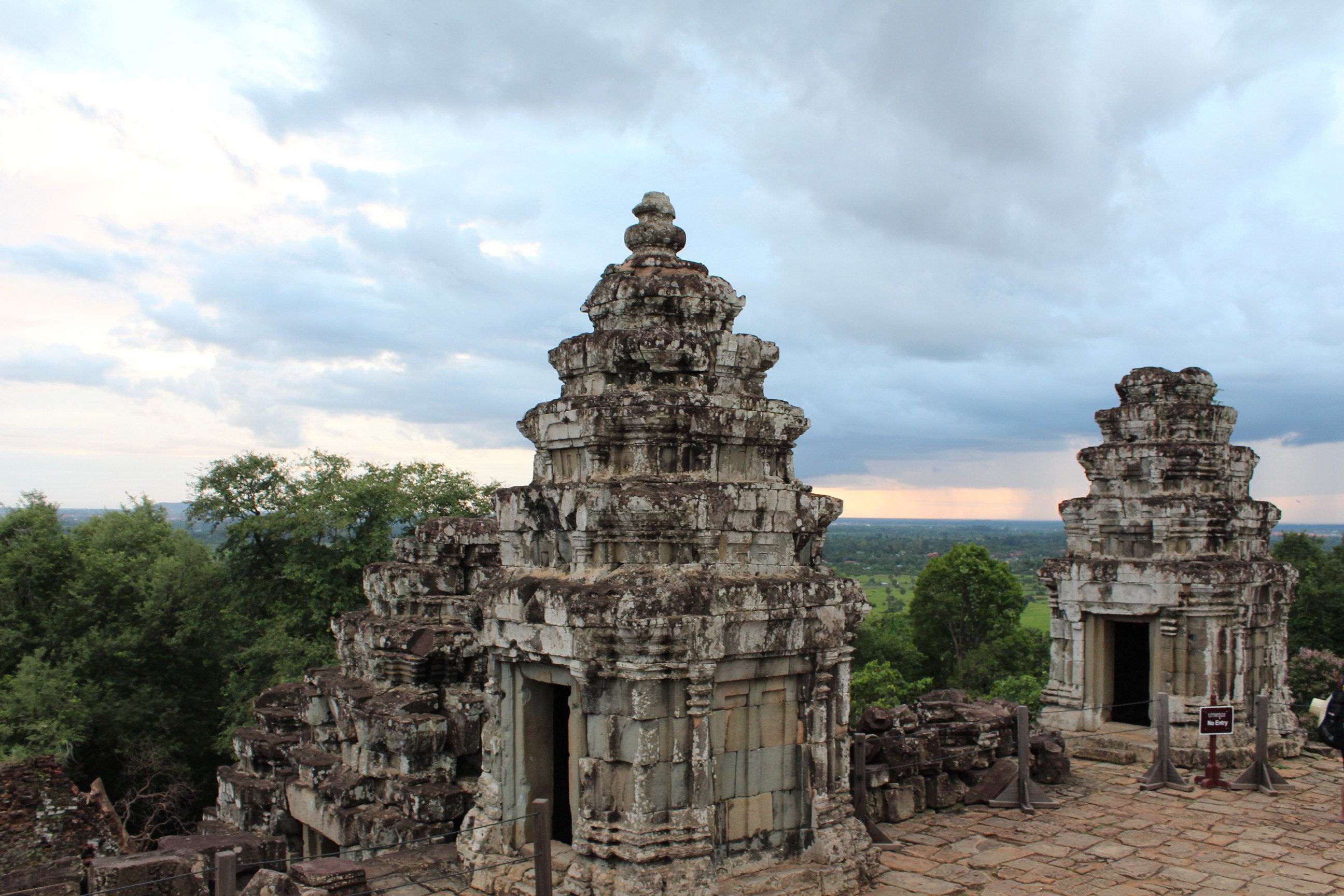 無論選用何種途徑,步步為營從狹窄和陡峭的階級攀上廟宇頂則無可幸免。廟宇經(jīng)過歲月的洗禮,已不見昔日的風采,但廟宇頂部的平臺可從高處遠眺吳哥窟。每逢晴天的黃昏日落時分,很多游客會來到山上欣賞吳哥日落,追憶這個失落的文明。由于這兒是看日出日落的寶地之一,每天臨近傍晚都會擠滿了游客和小販,熱鬧得象個公園。