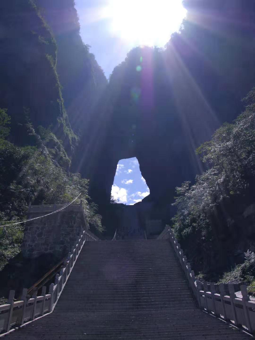 據(jù)說,天門洞開景區(qū)的有上天梯。有著九百九十九級臺階的上天梯!