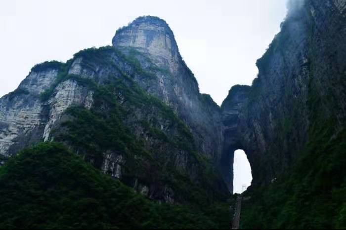 界天門山國家森林公園的天門山主峰,有一個巨大的山洞,這就是舉世聞名的天門洞。