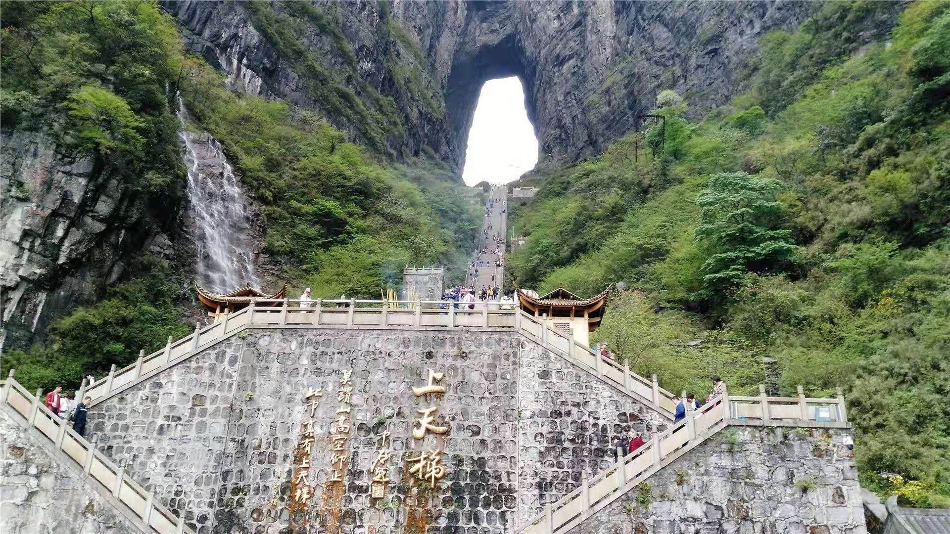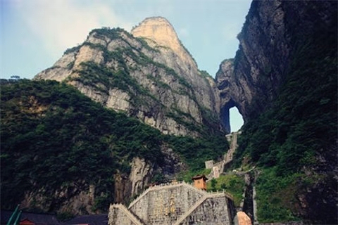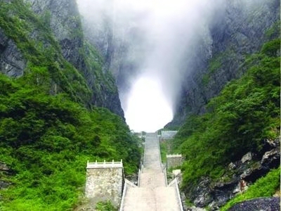 在古老的中國大地上,有一個人間通往仙界桃源的大山,武陵山脈之魂——天門山。您只要從天門山腳登上九百九十九級石階梯,就會到達通往仙界的大門——天門洞。版權所有山東聊城聊之旅國際旅行社有限公司,轉載必究!碩大的門洞足夠現(xiàn)代人駕駛飛機穿越而過,是世界上最高的天然溶洞,該天門洞形成的時間比唐僧取經(jīng)時收取的由石頭爆出的大徒弟孫悟空還早500余年(公元263年溶洞形成)。它是天門山中一塊大石塊由于吸聚天地之靈氣噴溥洞開而成。從此,凡人間偉大人物仙逝,該天門山上不管是晴空萬里還是滿天星斗,都瞬間電閃雷鳴,風雨交加,猶如天門洞落淚,傾盆而下……淚水沿著絕壁山崖瀑布而瀉,遠遠望去,似天上銀河下九洲。這現(xiàn)象至今仍無法開解!