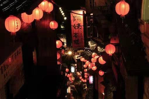 九份商圈主要范圍以聚集在基山街、豎崎路及輕便路等街道為主。人文歷史景觀如臺陽礦業(yè)事務所、彭園、五番坑口、升平戲院、九份金礦博物館等,而位于九份上,往下可俯視基隆嶼、八斗子、番仔澳、鼻頭角等地的海景,往上可眺望雞籠山景。九份日夜氛圍不同,于白日可俯瞰海景,感受九份老街旺盛人氣,于夜晚一切歸于寧靜,靜靜坐在茶樓間,細品九份寧靜氛圍,往外看,僅剩盞盞漁火于海面上。