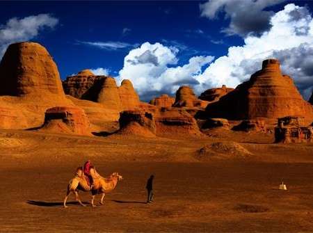 將軍戈壁是一個(gè)十分神奇而又迷人的地方,它獨(dú)特的地理環(huán)境孕育了獨(dú)具特色的自然景觀。這里的天空藍(lán)得讓你心醉神怡,這里的空氣新鮮得讓你不忍呼吸。那如烈焰騰空的是火燒山;那如紅氈鋪地的是紅柳的火陣;那綠意如春的是梭梭林。更讓你賞心悅目的是如夢如幻的海市蜃樓,那簡直就是一派仙境。遠(yuǎn)遠(yuǎn)望去,一泓春水,微波蕩漾,沙丘小樹點(diǎn)綴其間,幻化成亭臺(tái)樓閣,虛無飄渺,偶見身影閃動(dòng),如閑云野鶴,好不誘人。另外,亞洲最大的硅化木群,轟動(dòng)全國的恐龍溝,被稱為化石之庫的石錢灘都在這里,和魔鬼城并稱將軍戈壁“四大奇跡”。版權(quán)所有山東聊城聊之旅國際旅行社有限公司,轉(zhuǎn)載必究!那個(gè)“城樓”的神奇還在于它隨時(shí)間的不同而變幻。當(dāng)旭日東升,從遠(yuǎn)處望去,“城樓”就象一對披著晨光的武士,忠實(shí)地守衛(wèi)著城堡的安寧;當(dāng)黃昏初上,明月當(dāng)空,那個(gè)高一些的就像個(gè)戴斗笠的老爺爺講述一個(gè)古老而有趣的故事。看著那一幕安享天倫的幸福情態(tài),你無論如何也不會(huì)把它和魔鬼二字連系在一起。 只有在大風(fēng)之夜,你才會(huì)真正領(lǐng)略到它魔鬼的一面。這里的風(fēng)往往來的非常突然,有時(shí)明月當(dāng)空,風(fēng)清月麗,就說不定就會(huì)狂風(fēng)大作,飛沙走石。這時(shí)你就會(huì)聽到整個(gè)魔鬼城一片鬼哭狼嚎,有的聲如洪鐘。若惱若怒;有的細(xì)如婦泣,悲悲凄凄;還有的尖聲怪叫,讓人毛骨悚然。當(dāng)你孤身大漠,置身風(fēng)高月黑之夜,聽到這些令人心驚心膽戰(zhàn)的聲音,你絕對會(huì)有一種身置魔域的感覺。然而,當(dāng)?shù)诙煨袢諙|升,再看晨光下的魔鬼城,竟是那么溫順,那么安靜,大風(fēng)之夜的恐懼就像一場夢,你會(huì)感到一種從未有過的新奇和刺激。