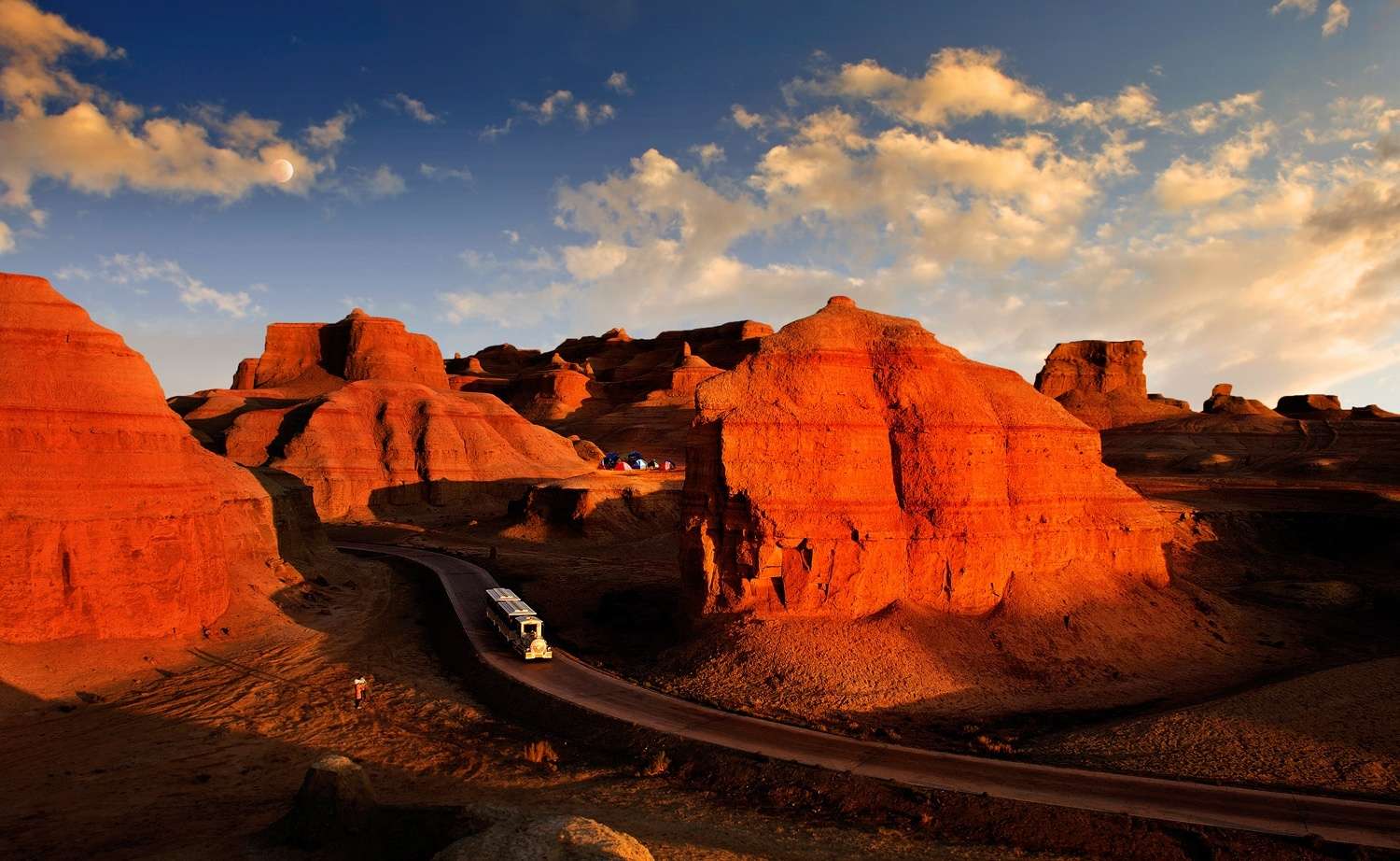 魔鬼城位于哈密市五堡鄉(xiāng)以南,距五堡鄉(xiāng)20Km,距哈密市約100Km,由于它神秘莫測,不熟悉地形的人若遇風(fēng)暴,有迷失方向的危險(xiǎn),哈密雅丹地貌東起煙墩外的駱駝峰,經(jīng)雅滿蘇鐵礦,大南湖煤礦,到五堡沙爾湖十三間房等長約400公里,寬約5-10公里,在哈密屬于特殊的地理環(huán)境,它是經(jīng)過漫長的風(fēng)蝕自然而形成的。 在魔鬼城可以看到那些酷似城堡、殿堂、佛塔、碑、人物、禽獸形態(tài)各異的景觀、令人眼花繚亂的陡壁懸崖、以及混跡巖礫中五光十色的瑪瑙、隨處可見的硅化木、枝葉清新的植物化石,偶爾可獲得象恐龍蛋化石的小圓石頭,海生的魚類化石、鳥類化石,當(dāng)夜幕降臨時(shí)有時(shí)會(huì)聽到鬼哭狼嚎令人發(fā)指的嘶叫,因此才被人們稱之為“魔鬼城”。版權(quán)所有山東聊城聊之旅國際旅行社有限公司,轉(zhuǎn)載必究!其實(shí)這里還真正存在著古城堡建筑、古民房遺址―艾斯克霞爾古城堡:離地面約六米的風(fēng)蝕臺(tái)上的長方形的土夯建筑有高約五米,前面有門有窗的居住地,這就是人類活動(dòng)之地、是古絲路的驛站或是哈密王朝的西南前哨,據(jù)當(dāng)?shù)厝送茰y,此地西面的沙爾湖(由流沙通向羅布泊)干涸之前,這里也有村莊人家,當(dāng)水源游移(地殼變化)沙爾湖消失后,林木飛鳥在風(fēng)沙中,部分變?yōu)榛说鼐幼〉娜酥坏帽尘x鄉(xiāng),連先祖的遺骨也移走了、至今僅有遺址。哈密魔鬼城已是國家AAAA級景區(qū)。