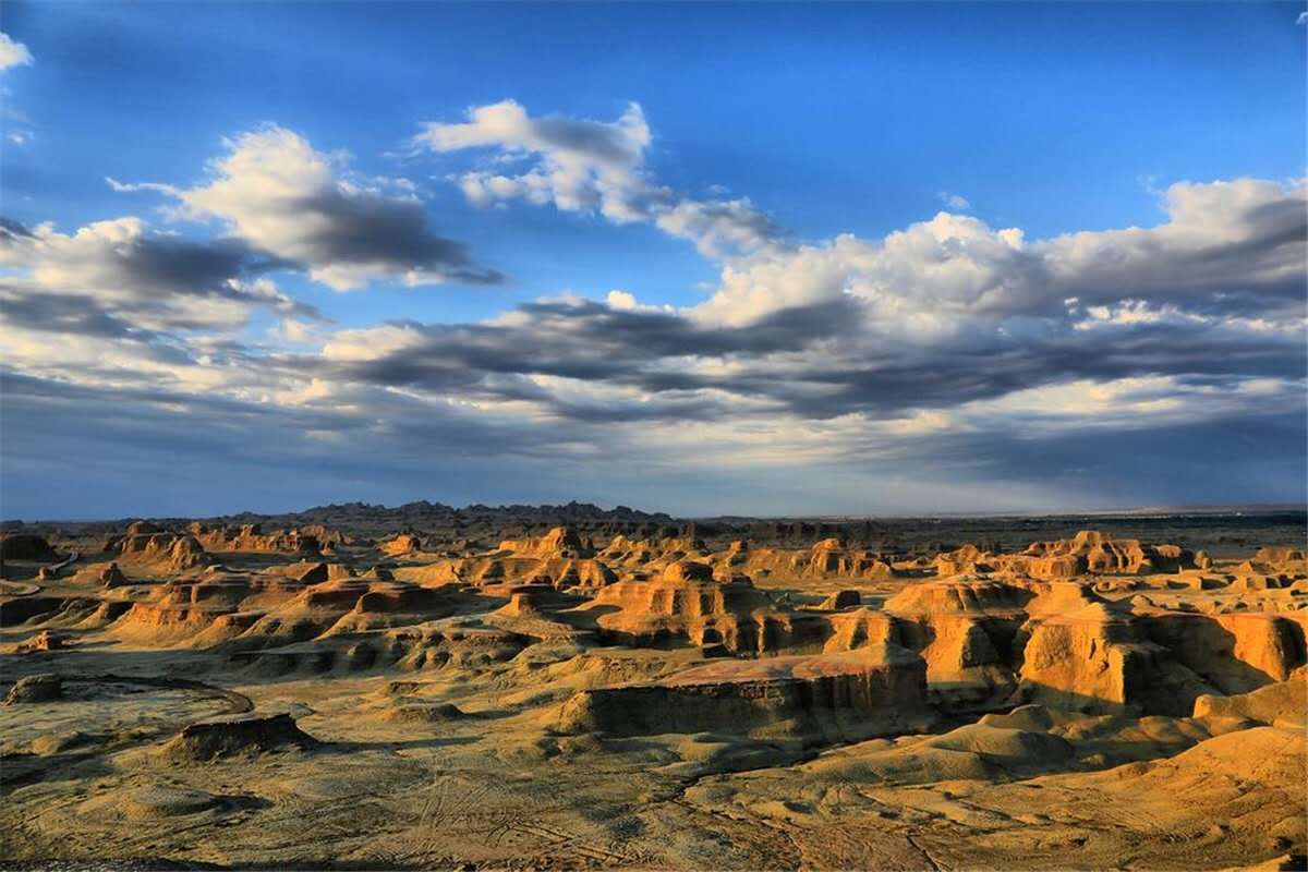 1.2萬年以來的全新世,在洪流和強(qiáng)風(fēng)的作用下原來平坦的盆地被慢慢沖刷剝蝕。風(fēng)和流水可以帶走疏松的沙土層,對堅(jiān)硬的泥巖層和石膏膠結(jié)層卻作用有限。版權(quán)所有山東聊城聊之旅國際旅行社有限公司,轉(zhuǎn)載必究!不過致密的泥巖層也并非堅(jiān)不可摧,荒漠區(qū)變化劇烈的溫差產(chǎn)生的脹縮效應(yīng)導(dǎo)致泥巖層最終發(fā)生崩裂,暴露出來的沙土層被風(fēng)和流水帶走,演變?yōu)榘疾蹱睿灰廊挥心鄮r層覆蓋的部分相對穩(wěn)固,形成或大或小的長條形土墩,這種奇特的地貌形態(tài)逐漸凸現(xiàn)出來。